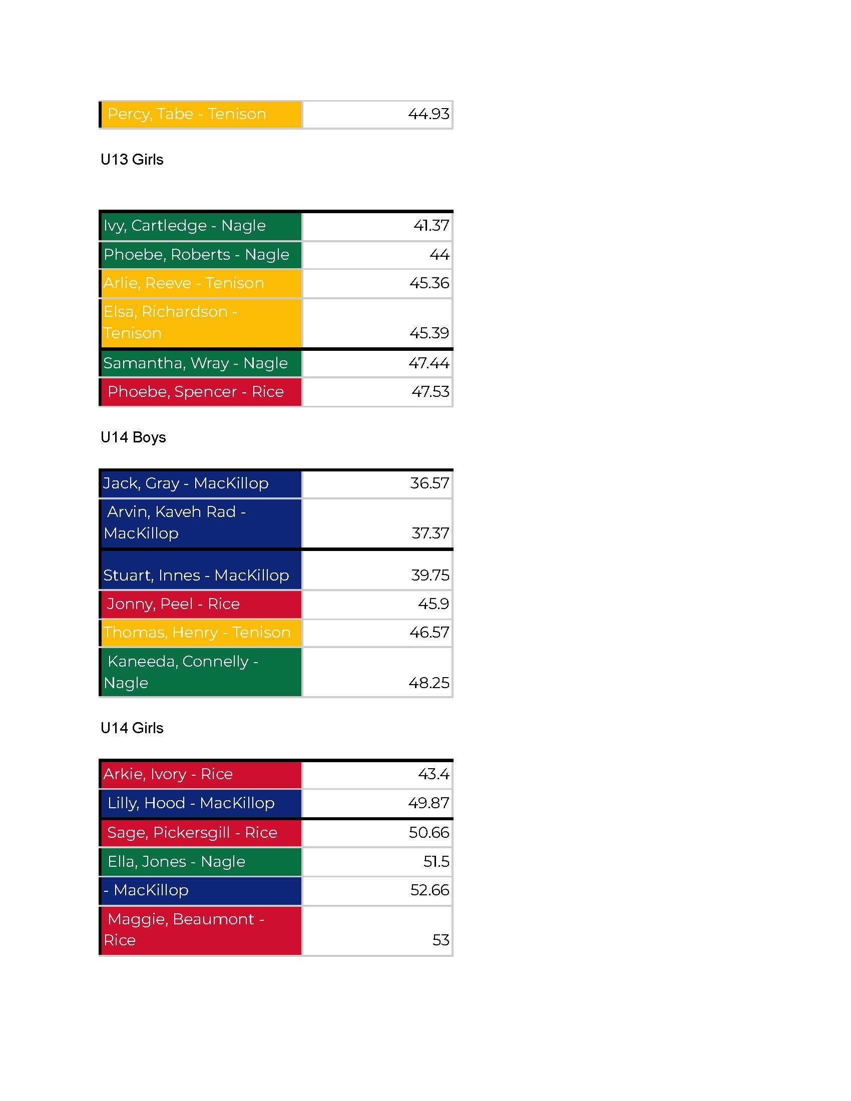 Gabbie Tonnelly, Morgan Butler, Stella Manion, Eleanor Pietsch, Ella Farquhar, Lachlan Tonelly, Samuel Dettmer, Isaac Pietsch, Nate Bristol, & Jasper Twitchett